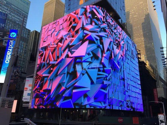 該顯示屏面積1600平方米,結構呈L型,轉角處半徑小于3米的弧面均采用上海三思自主研發(fā)的特制顯示模塊,攻克了弧形轉角屏“整屏無縫銜接”的技術難關,以2500萬超高像素成為紐約時代廣場上乃至全球分辨率最高的廣告屏,被業(yè)主稱為“最好的顯示屏”,也是目前上海三思在時代廣場最大的顯示屏。