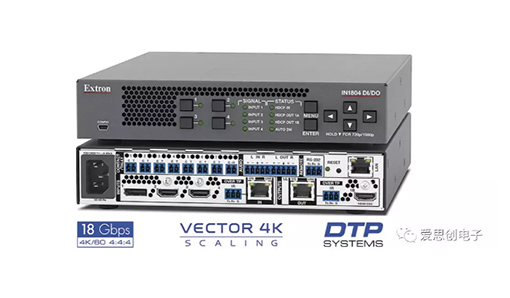 Extron 非常高興地推出 IN1804 DI/DO。作為 IN1804 家族的全新成員,它是一款緊湊型 4 路輸入圖像解析度轉(zhuǎn)換器,具備卓越的視頻縮放、切換和集成特性。該產(chǎn)品支持高達(dá) 18 Gbps 的數(shù)據(jù)速率,以及分辨率高達(dá) 4K/60,帶 4:4:4 色度取樣的計(jì)算機(jī)和視頻信號(hào),同時(shí)符合 HDCP 2.2 標(biāo)準(zhǔn)。它采用 Extron 專(zhuān)利的 Vector™ 4K 解析度轉(zhuǎn)換引擎及 30 位色深的視頻處理, 以確保最最佳的畫(huà)面質(zhì)量。單路 DTP2 輸入和單路 DTP2 輸出可通過(guò)單根 CATx 屏蔽電纜輕松將視音頻及控制信號(hào)延長(zhǎng)至 100 m (330') 遠(yuǎn)的各端點(diǎn)。IN1804 DI/DO 圖像解析度轉(zhuǎn)換器可提供快速、可靠的自動(dòng)切換, 以及音頻加嵌/解嵌、無(wú)縫轉(zhuǎn)換效果、徽標(biāo)鍵入和雙絞線(xiàn)延長(zhǎng)等眾多高級(jí)功能, 其性能及靈活性可滿(mǎn)足最嚴(yán)苛的演示環(huán)境應(yīng)用需求。
