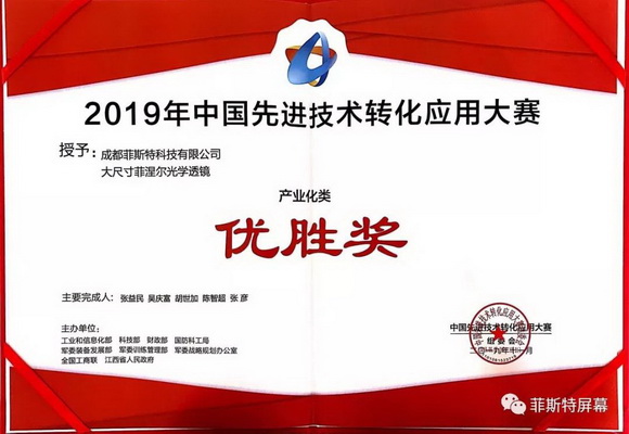 此次大賽總決賽于11月19日-21日在江西南昌國際博覽城綠地鉑瑞酒店圓滿舉行。成都菲斯特科技有限公司副總裁吳慶富先生帶領技術團隊晉級總決賽,我司技術團隊在總決賽中表現出色,其中大尺寸菲涅爾光學透鏡榮獲產業化類“優勝獎”。