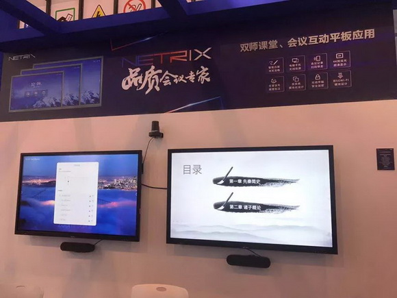 雙師課堂由最新上市的 “NETRIX品質會議專家”傾情打造,集“硬”技術和“軟”實力于一身的NETRIX讓雙師課堂擁有更智能、高品質的顯示體驗。兩臺75寸新品NETRIX智能交互平板的完美應用,實現了一對多實時在線授課,將名校名師課程通過實時直播傳授給其它校區學生,講師和學生還可隨時互動,最大化實現優質教學資源共享。NETRIX智能交互平板應用NEC色彩級桌面顯示器的引擎技術,令畫面顯示更精準、細膩。小于2mm低觸摸高度、1mm觸控精度、20點觸控數量的產品優勢讓觸控更加精準、靈敏。同時,NETRIX搭載的雙5G模塊全面迎合了5G時代來臨的趨勢。