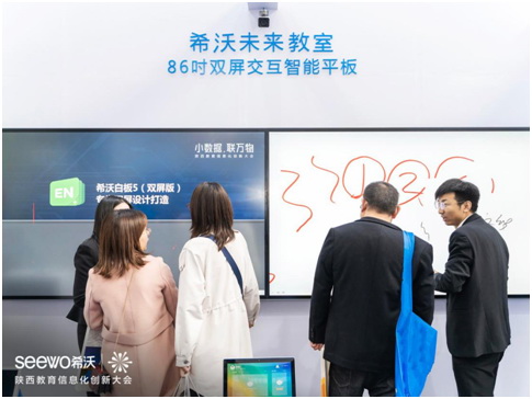 此次展會現場,希沃新品“雙屏電容交互智能平板”也是首次在陜西亮相,憑借雙屏一體、全屏貼合和未來風向標業界獨創的隱形縫隙發聲等亮點,吸引了大批量領導老師體驗。