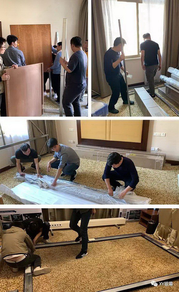 XY銀幕展出各種新產品:地升幕(首發)、變幅幕(16:9變2.35:1)、隱藏天花幕、帶音箱電動幕、短焦激光抗光幕、各型號的智能電動幕和畫框幕、高品質線材等產品。