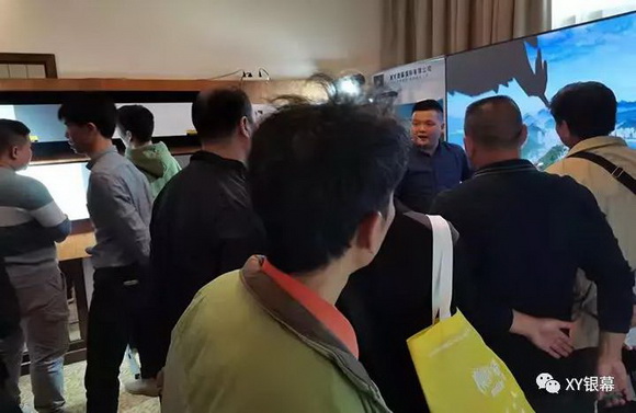 現場眾多發燒友對我們產品充滿的興趣,不斷向銷售人員提問,想進一步了解我們的產品,銷售人員都耐心解說,電視臺媒體采訪XY銀幕。