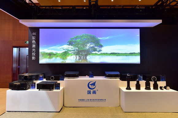 國畫以近一年自主研發新上市的高亮度、高分辨率激光投影機和鏡頭為重點,系列展示了國畫激光投影機家族。