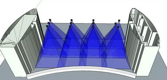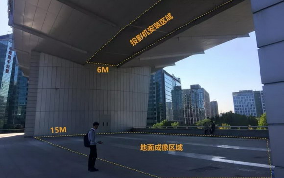該項目由安恒集團提供投影系統解決方案,由于人的視角與視點是1.7米左右的位置向下看,技術人員充分考慮以像素點最小為原則,最終確定選用高清(1920x1200)的投影機,利用12臺10,000流明的松下激光工程投影機PT-FRZ98C,采用3*4融合的方式對長33米,寬15米的地面進行投射。