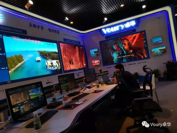 Voury卓華作為行業領先的室內大屏顯示及拼接控制整體解決方案提供商,本屆展會主打應用場景現場模擬,現場共展出包括SMD封裝LED顯示屏、COB封裝LED顯示屏等在內的多套拼接大屏幕。Voury卓華將有多套顯示屏分別模擬不同應用場景進行展示: