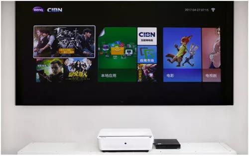 此外,明基激光電視還擁有智能系統,能夠在線觀看海量大片,支持手機同屏。