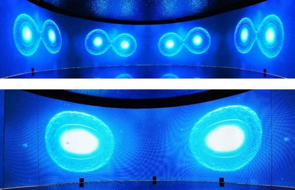 本項(xiàng)目位于東莞市浙商大廈某機(jī)構(gòu)展廳使用,所用產(chǎn)品是易事達(dá)戶內(nèi)固裝IA系列,總面積為170平方。值得一提的是這塊環(huán)形大屏兩側(cè)分別都有扇開合門,如何將開合門與顯示屏完美融為一體而不影響顯示效果成為本次的一大技術(shù)難點(diǎn),但易事達(dá)憑借豐富的項(xiàng)目經(jīng)驗(yàn)成功攻克了這一技術(shù)難題,在工期內(nèi)交付一份讓甲方滿意的答卷。