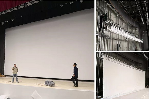 項(xiàng)目介紹:650寸16:9 下卷幕配4K軟白拉線幕布;開創(chuàng)大視界,超級(jí)震撼的大視覺體驗(yàn)。