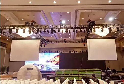 4.北京國際酒店會(huì)議廳兩個(gè)250寸電動(dòng)玻纖幕