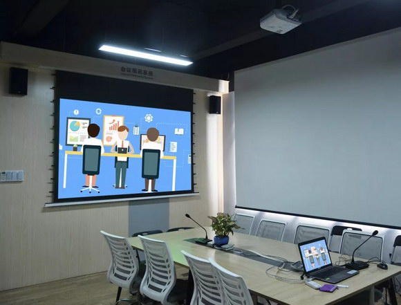 XY會(huì)議視訊系統(tǒng):XY黑晶抗光幕+投影機(jī)+音頻系統(tǒng),當(dāng)筆記本電腦啟動(dòng)時(shí),XY黑晶抗光幕同步下降,十分便捷。在燈光和環(huán)境光影響下,XY黑晶抗光幕表現(xiàn)十分出色,投影畫面非常清晰,滿足日常遠(yuǎn)程會(huì)議,銷售例會(huì),圖紙協(xié)同修改,商務(wù)研討等各種場(chǎng)合,達(dá)到提高工作效率和提高公司形象。