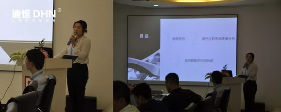 此次活動由市場部經理嚴艾麗主持,開場致辭后,活動便正式開場了,從迪恒(DHN)品牌介紹開始,讓合作伙伴們對迪恒(DHN)投影的文化以及發展歷程進行了解。