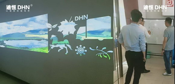 我們還有貼心的小哥哥小姐姐們用身體力行將貼心的服務貫徹到底,帶領我們的合作伙伴們親身體驗投影功能的魅力所在,迪恒(DHN)內置的強大的處理芯片,賦予迪恒激光投影儀更多可能,進化的內置硬融、17*17幾何校正,強大的邊緣遮罩功能,未來我們具有無限可能!。
