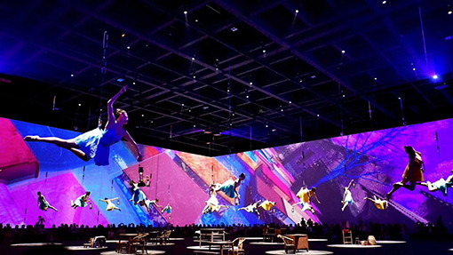 M-Vision Laser 18K WUXGA作為單片激光投影機,同樣展現其卓越的性能,8臺投影機采用高空吊裝方式,對單面長36米寬12米,共四面墻體的Cave進行投射,每面使用兩臺投影機。MV18K投影機憑借其內置的ColourBoost色彩增強技術為這款單芯片DLP投影機帶來最真實、最飽和的顏色。使觀眾能在進行中觀演,猶如身臨其境,在不同的時空和故事中穿梭,將現場環境浮現在如云海之上,讓人產生俯瞰人間的感覺。