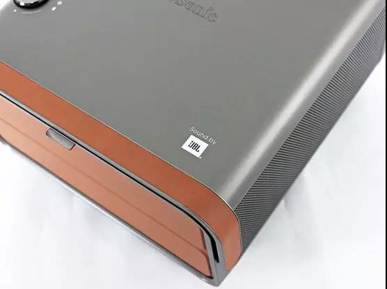 另一側(cè)角落有一個(gè)白色“JBL”標(biāo)識(shí), 表示這臺(tái)優(yōu)派新一代X10搭載了JBL音箱系統(tǒng)。