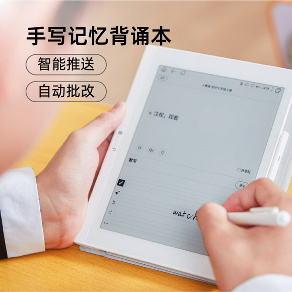 小墨的“背誦本”功能刷新了師生對復習機的認知,它不僅有閱讀功能,還有自動檢測功能。學生可以直接在屏幕上默寫或聽寫英語單詞,小墨將自動識別手寫內容*,并對學生的學習成果進行智能檢測并判斷對錯,解決學生記不住、記不牢英語單詞的問題。這一功能也能運用于語文古詩詞的記憶中,通過書寫識別判斷,背對課本卻寫錯字詞的幾率將大大降低,學生也可以將重點放在不熟悉的課文上,幫助學生更好地把握“送分題”。