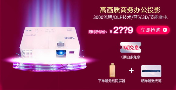 過了雙11,寒假也就不遠了。不少家長為了孩子視力著想,已經盤算著把家里電視換成投影機,好給孩子上網課。這里推薦一款NEC V302XC投影機,雙11跌破底價,秒殺價1999元,限時限量30臺,手慢無,活動結束將恢復原價。另外購買即贈HDMI無線投屏器,趕快把鬧鐘定起來吧。