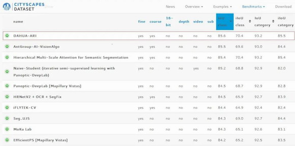 大華AI取得Cityscapes數(shù)據(jù)集排行榜第一