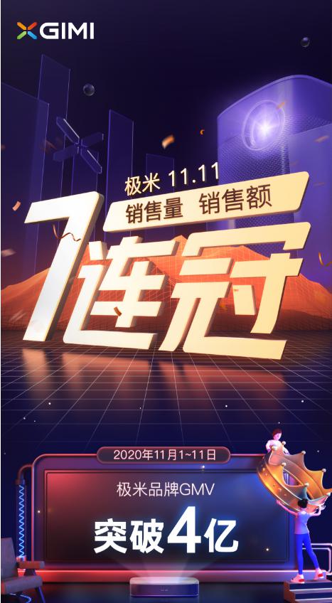 2017年11月11日,極米無屏電視全網銷售額連續四年持續增長。