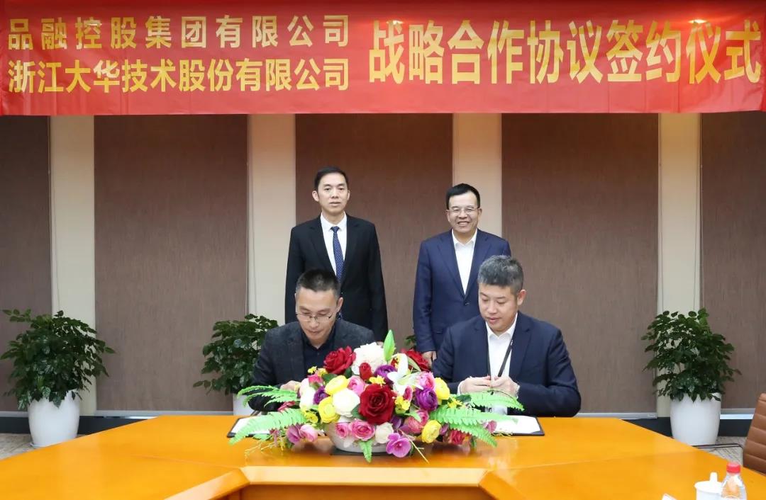近日,大華股份與品融控股集團有限公司(以下簡稱品融集團)簽署戰略合作協議。大華股份董事長兼總裁傅利泉、品融集團董事長邱娣兵出席簽約儀式,大華股份國內營銷中心副總裁史東,品融集團財務總監馬振璽代表雙方正式簽約。
