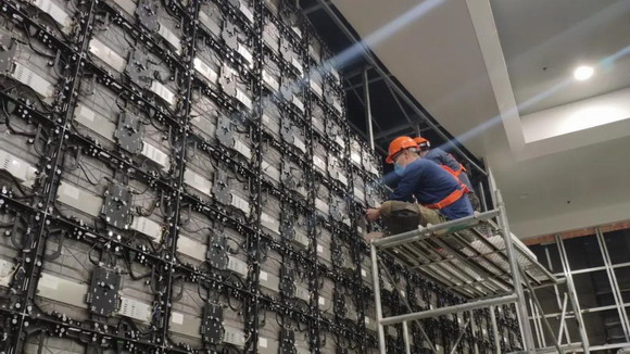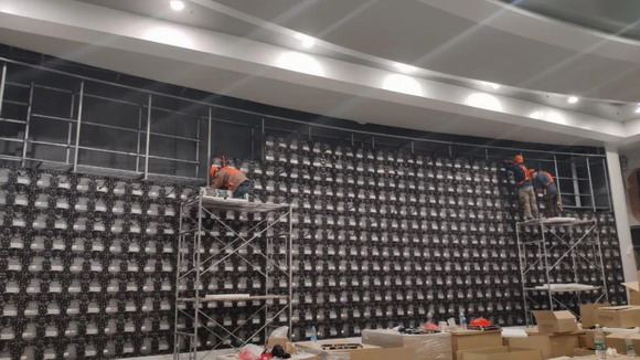 它在北京展會上的亮相不僅僅是為了賺足觀眾的“眼球”,也表明了GQY視訊的這款全倒裝 COB Mini LED節能冷屏已經開始供貨。當然了,我們要用事實說話,舉個例子!在目前正在裝修維護階段的開封市公安辦公大樓內,GQY視訊的76平米全倒裝COB大屏也在同步開展搭設調試工作,搭設調試工作的開始也意味著我們的全倒裝產品已經大規模推向市場,此次大屏的安裝工作經公司安排特由GQY視訊寧波杭州灣生產基地的陳廠長帶隊工程部的幾名同事一起前往,此番“老將出馬”也可看出公司對此項目的重視程度。