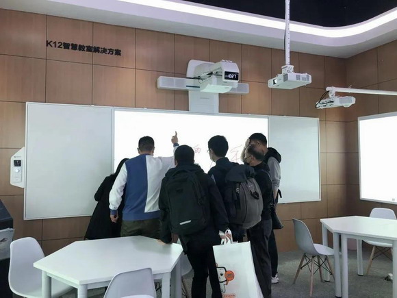 K12智慧教室解決方案針對實際教學場景需求,老師可直接對投影在白板上的課件進行圈點批注,兩側白板上的書寫內容亦可通過投影機同步顯示在投影畫面中,使用十分便捷。不僅如此,該方案支持教學互動,小組討論或是教學信息批注都可以存在云端進行同步投影。為教師減負,更為同學們提供活躍有趣的學習環境,真正運用科技創新讓課堂變得更高效。