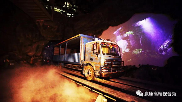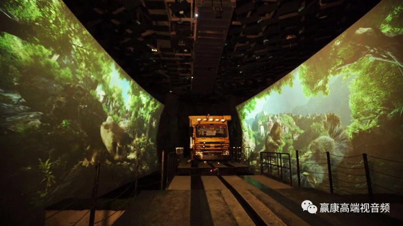 隧道內的幕布根據不同的場景做了異型包裝,贏康科技參與了異型投影片源制作過程中的溝通、測試等工作,經過20次的反復測試和調試后,畫面與幕布精確匹配,投影與場景完美融合,效果更加真實。