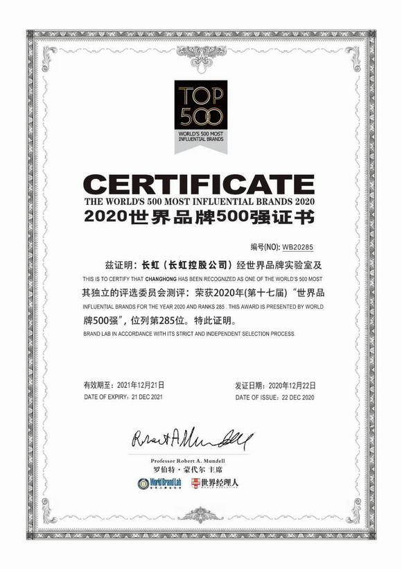 日前,世界品牌實驗室(World Brand Lab)2020年度《世界品牌500強》排行榜揭曉,43個中國品牌入榜,長虹繼續蟬聯其中。