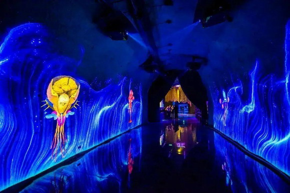 《星洞傳說》夢幻樂園,以“星空探索”為故事主線,利用多彩變幻的燈光、獨創(chuàng)的互動裝置以及恢弘而絢麗的動畫影像,打造出一場融合了行進、探索、表演、沉浸式體驗的夢幻星洞探索之旅。