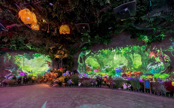 晶瑩的星空穹頂之下,奇花異草、生靈動物在此間穿梭繁衍,由Vivitek(麗訊)工程投影所呈現(xiàn)的動態(tài)影像充分利用了巖壁空間,完美的呈現(xiàn)了一座720度的夢幻奇景。