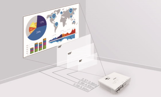 在不同的場景中應用需要選擇不同投射比的投影機。