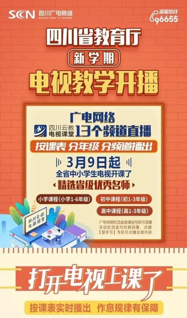 最重要的是,這些線上課程全部免費,家長們可以放心。3月9日起將依托四川省教育資源公共服務平臺(網(wǎng)址www.scedu.com.cn),通過四川廣電網(wǎng)絡有線電視分年級分頻道播出,通過四川電信、四川移動、四川廣電、四川聯(lián)通網(wǎng)絡電視(IPTV)教育專區(qū)和四川省教育資源公共服務平臺“停課不停教、停課不停學”專區(qū)同步推出點播、回放。