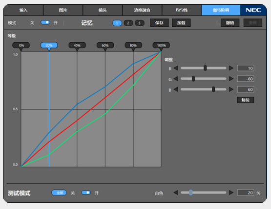為了避免這種后顧之憂,PX2000UL+可以對(duì)多機(jī)中的某一臺(tái)設(shè)備,或一臺(tái)設(shè)備中的某一塊區(qū)域進(jìn)行色彩精確校準(zhǔn),快速幫客戶解決問題、對(duì)癥下藥。而在影響一致性效果的原因不是偏色而是灰階時(shí),PX2000UL+同樣可以調(diào)整不同層次的Gamma曲線,對(duì)RGB分色調(diào)校,從而保證畫面色彩的一致性。