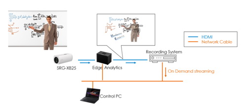 將攝影機與基于AI的邊緣分析設備REA-C1000 相結合后,用戶可以實時創建高質量的節目內容,以保持觀眾的積極互動參與,提供強大的遠程拍攝和流媒體解決方案。舉例而言,憑借Chroma key-less CG Overlay(無色度鍵CG疊加)技術,SRG-XP1 可以輕松地在密閉空間中創建富有吸引力的視頻內容。這一功能可以精準擷取被攝者的影像并重疊于其它畫面的背景中,無須專用的后屏背景或特殊培訓。同樣地,SRG-XB25 也得益于 REA-C1000 強大的變焦與Handwriting Extraction feature(手寫提取功能),確保遠程觀看演示文稿的觀眾可以清楚地看到手寫內容和圖表,并可同步看到演講者的動作與手勢。