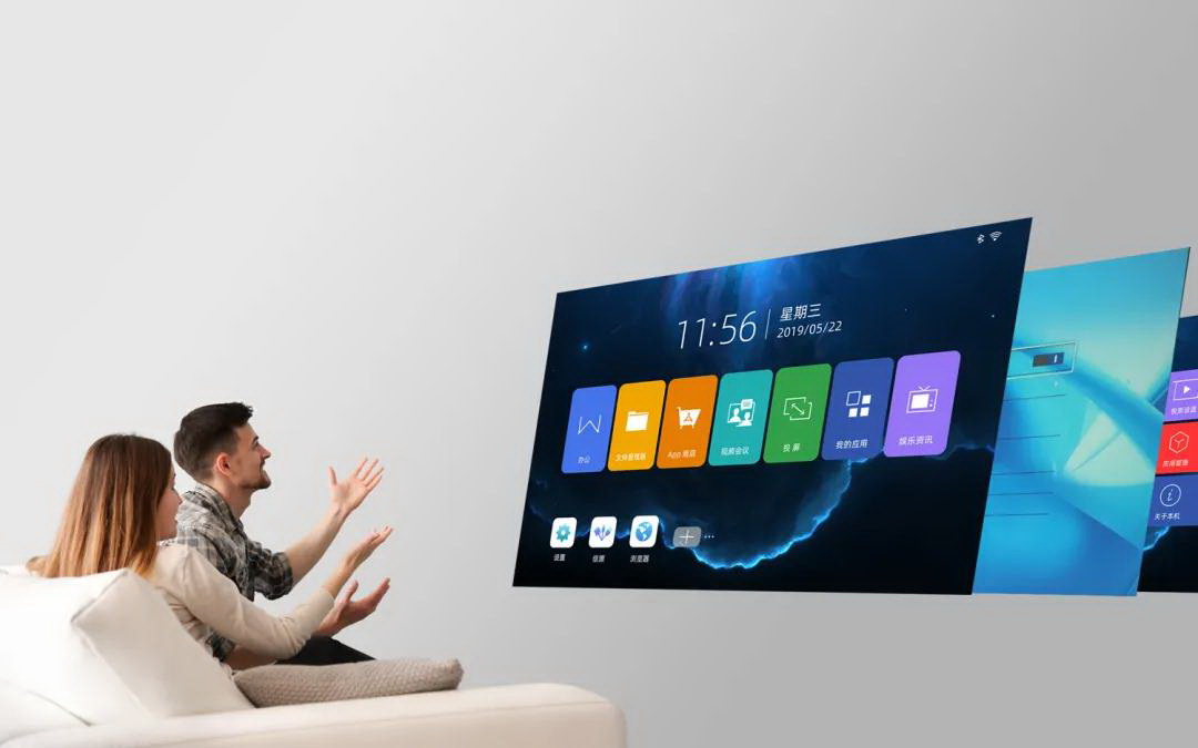 電腦、Pad、手機均可輕松投屏,大屏小屏自由切換。小屏同步在大屏之上,盡享100吋以上大畫面的辦公、看片、追劇新生活方式。也可藍牙連接音響、耳機等設備,實現真正意義上的All in one。