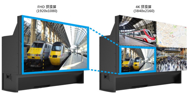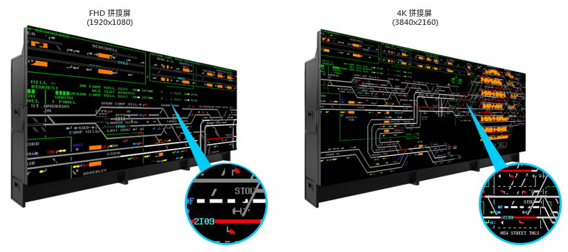 3)4K顯示單元的顯示范圍是HD 單元的4倍,可帶給軌道交通監(jiān)控系統(tǒng)更多細節(jié),畫面顯示更細致,監(jiān)控范圍更大;