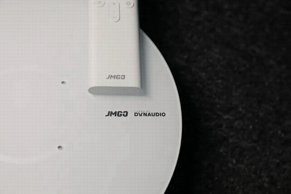 投影儀主機+遙控器+電源線+電源適配器+說明書,構成了整套產品。投影儀主機外型圓潤,光滑的鏡面機身上為4個拾音孔,邊緣印著堅果logo“JMGO”,沒有一絲多余的累贅設計。鏡頭方面,同樣采用了LED燈泡,800*ANSI流明的投影亮度,與1920*1080全高清的物理分辨率,參數在主流旗艦配置里雖中規中矩,但已完全夠用。