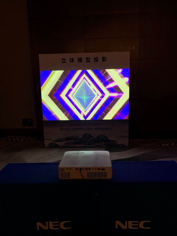 北京站推廣會現場,英雄、哈勃和極光三大NEC工程投影機新品系列悉數亮相。NEC投影機產品經理張凱先生現場講解新品性能與操作,并對3D Mapping投影秀、全息紗幕投影、立體模型投影等眾多精彩解決方案進行了詳細地介紹。