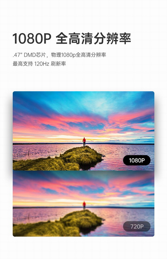 保持.47”DMD芯片,物理1080p全高清分辨率的優勢下,本次堅果J10的亮度由前代的2000ANSI提升至2400ANSI,是當前市場家用投影儀中最高亮度參數,體現在消費者實際使用場景中,意味不論是室內開燈或白天日光強烈的環境,多種場合下都能播放出清晰的畫面。