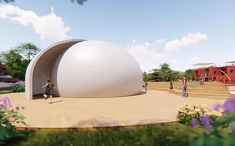 運行中的科視Christie DWU8902-GS 激光投影機 “五感泡泡”球幕建筑的外部形態