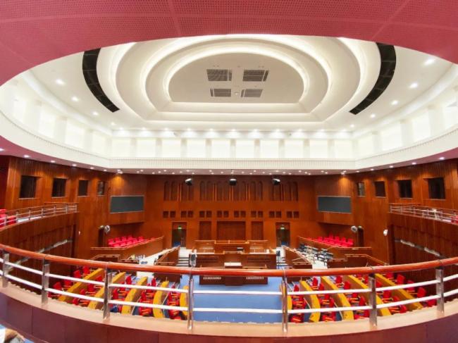 我們為新議會大廈提供了同聲傳譯發言表決單元800多席、雙邊耳機800多套、嵌入式CAT5系列數字會議單元700多席、PRO系列圖控系統、中央控制系統、高清錄播系統等。