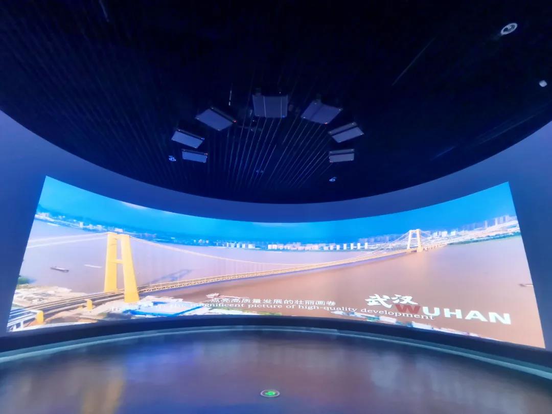 7臺高亮工程投影機組成的巨幅環(huán)幕上,新時代的武漢正毫不吝嗇地展現(xiàn)著城市精神與力量。