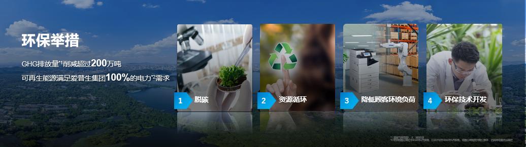 對此,愛普生進一步更新了《2050環境愿景》,計劃投入1000億日元落實環保措施,并計劃在2023年使用可再生能源滿足整個集團100%的電力需求,到2030年我們以實現控溫1.5℃的目標,降低整體排放量,最終到2050年達成碳負排放和地下資源零消耗目標*1*2。