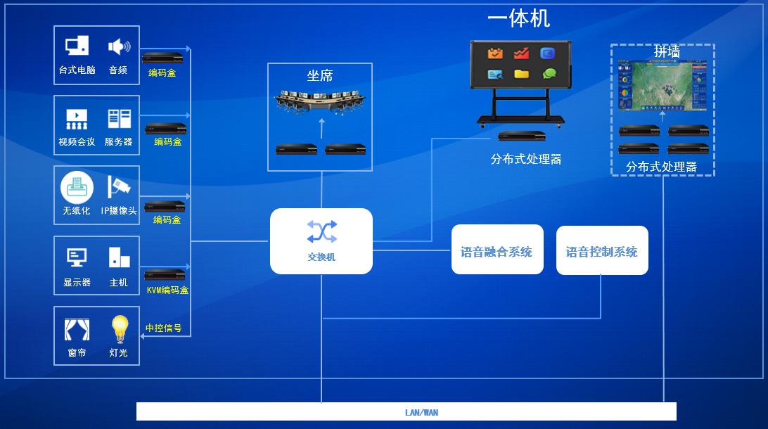 隨著信息化建設的發展,會商室從單一的會議職能,慢慢向一體化決策中心發展,具有指揮系統、監控系統、會議系統、業務數據處理系統等各種業務處理和決策能力,先進的會商室甚至成為各種業務匯聚管控的中樞。
