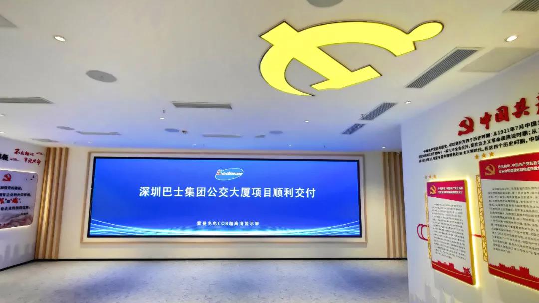 為向深圳巴士集團黨員群眾定期輸送“紅色精神食糧”,方便“家門口”黨群教育活動的開展,深圳巴士集團打造黨群服務(wù)中心并于近日投入使用。雷曼光電COB超高清顯示屏作為深圳巴士集團黨群服務(wù)中心全媒體黨建活動的展示平臺與載體正式亮相。
