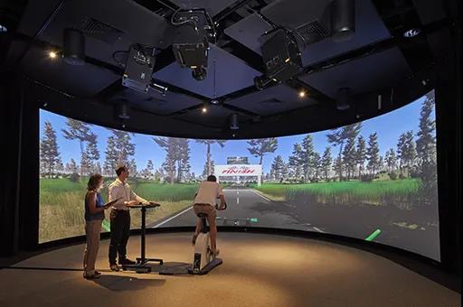 位于澳大利亞的科廷大學在計劃對其所屬的沉浸式可視化和研究中心(HIVE)進行升級改造時,遇到類似問題。HIVE是用來支持和鼓勵在整個大學的研究項目中使用可視化技術的先進設施。學校選擇由InDesign Technologies擔任本次改造項目顧問,而Vizcom擔任集成商。升級項目計劃以圓柱體和圓頂顯示屏幕為中心。圓柱體高3米,直徑8米,具有180度投影表面,圓頂部分是直徑4米的半圓頂,將為觀察者提供從主視野到全部外圍視野的全包圍沉浸式體驗。