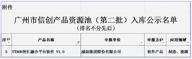 近日廣州市工業(yè)和信息化局對《廣州市工業(yè)和信息化局關(guān)于廣州市信息技術(shù)應(yīng)用創(chuàng)新產(chǎn)品資源池(第二批)入庫名單》進(jìn)行了公示,威創(chuàng)憑借VTRON智匯融合平臺V1.0成功入圍此次資源池名單。