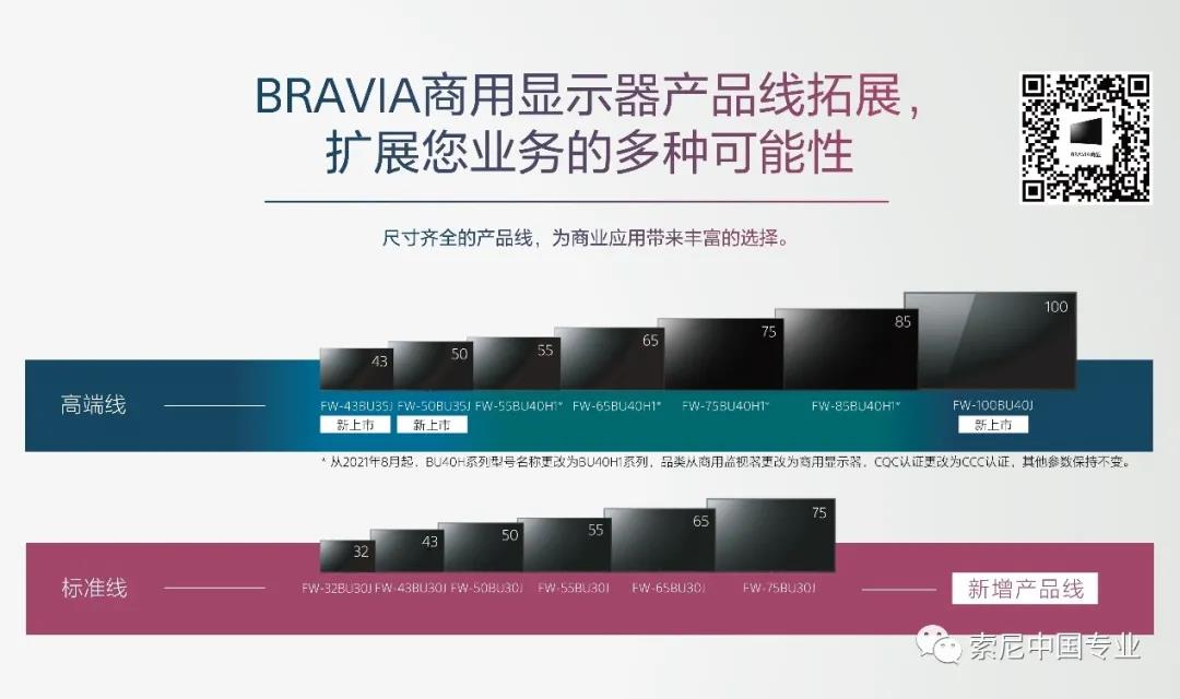 2021年,憑借陣容強大的高端線產品BU40/BU35J系列與標準線產品BU30J系列,索尼BRAVIA商顯發力高速成長的中國市場,滿足各細分領域的客戶需求,為企業與大型數字標牌等場景提供高價值的專業服務。
