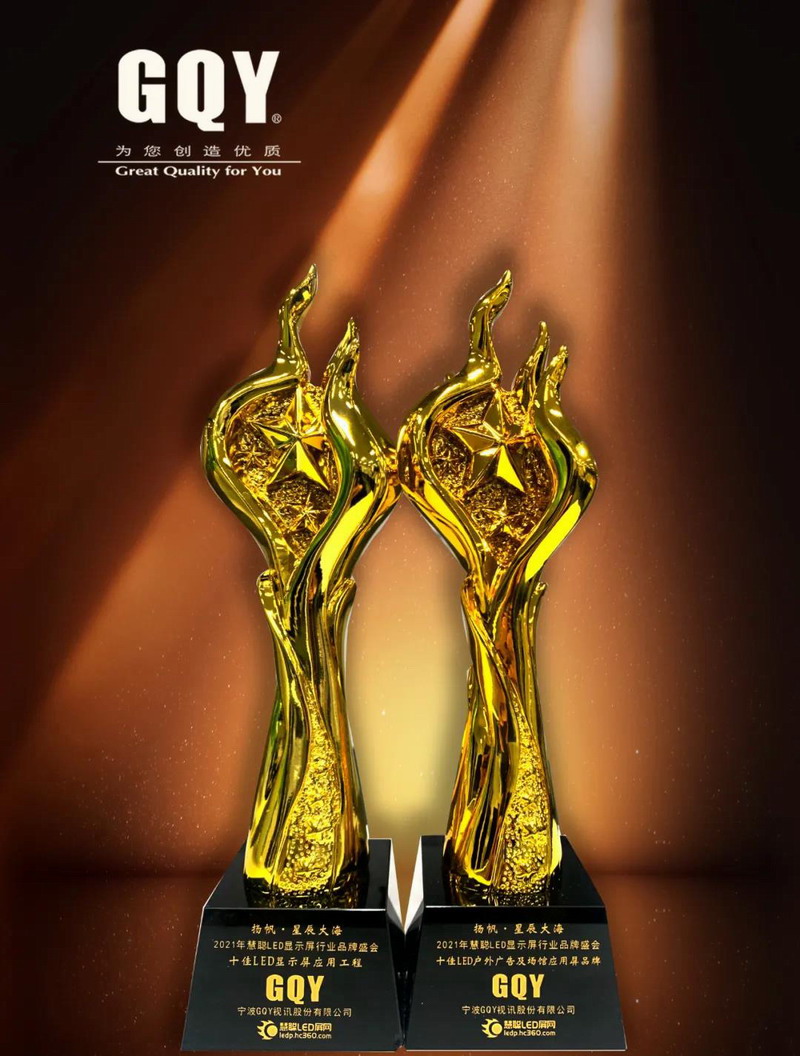 12月23日,由慧聰LED屏網(wǎng)主辦的 “揚帆·星辰大海”2021年度慧聰LED顯示屏行業(yè)品牌盛會頒獎盛典于深圳隆重舉行。來自全國各地的近400位行業(yè)精英代表、企業(yè)領(lǐng)袖以及業(yè)內(nèi)的經(jīng)銷代理工程商、媒體朋友等出席了本次品牌盛會,見證企業(yè)的高光時刻。慧聰LED顯示屏行業(yè)品牌盛會迄今舉辦了十屆,每一屆評選出來的十佳優(yōu)秀品牌都要在專家評審團的最終考核下才能晉級,專家評審團都是由業(yè)內(nèi)具有權(quán)威影響力的專家學者組成,擁有豐富的學識經(jīng)驗和敏銳的行業(yè)洞察力,為行業(yè)的發(fā)展提出建設(shè)性的指導意見,促進行業(yè)規(guī)范秩序和健康發(fā)展。經(jīng)過兩個多月的網(wǎng)上投票和專家審核、復核環(huán)節(jié),GQY視訊榮獲“十佳LED戶外廣告及場館應用屏品牌”、“十佳LED顯示屏小間距應用品牌”。