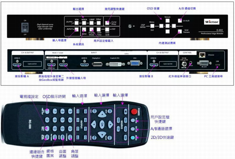 邊緣融合,與簡單重疊相比,將重疊部分的亮度分別線性衰減和增加, 在顯示效果上表現為整幅畫面亮度完全一致。